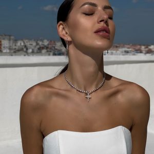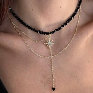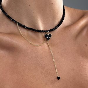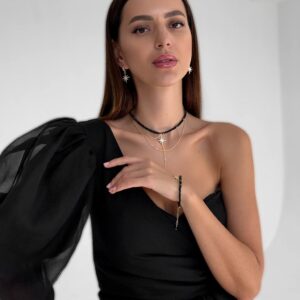 Кольє Vanessa з чорного кришталю (золотий колір)
