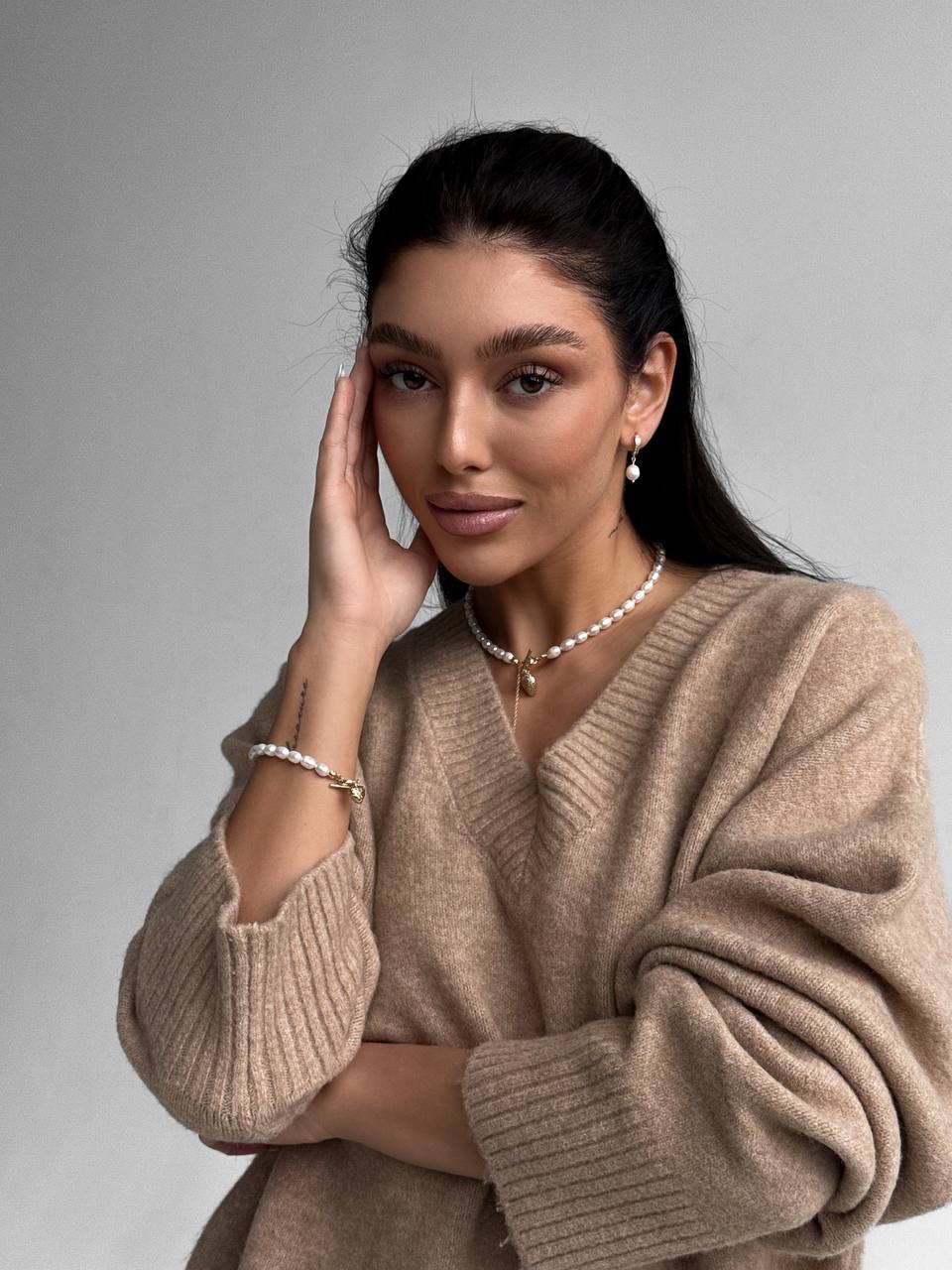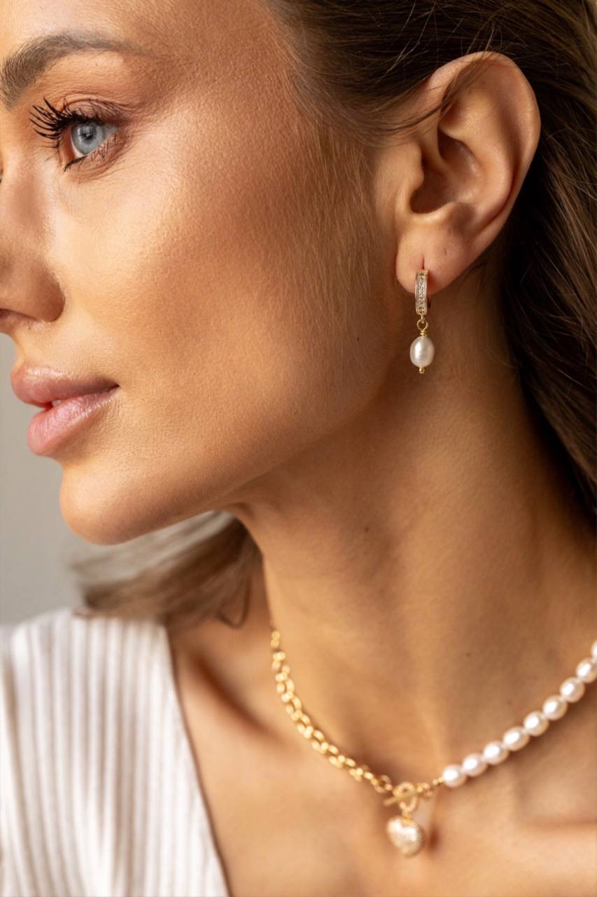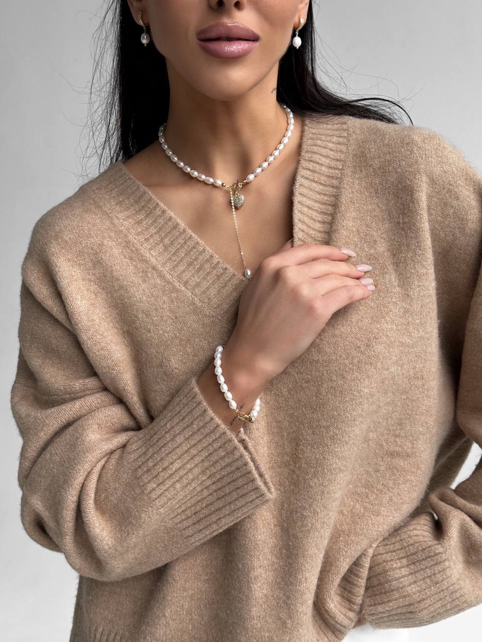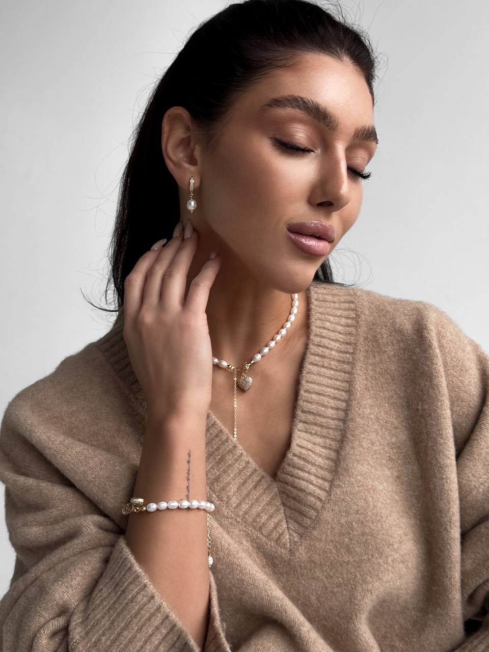 Витончений браслет з перлин, що гармонійно доповнюється золотим серцем,яке вкрите фіанітами. Він ідеально облягає зап’ястя, додаючи жіночності та витонченості!