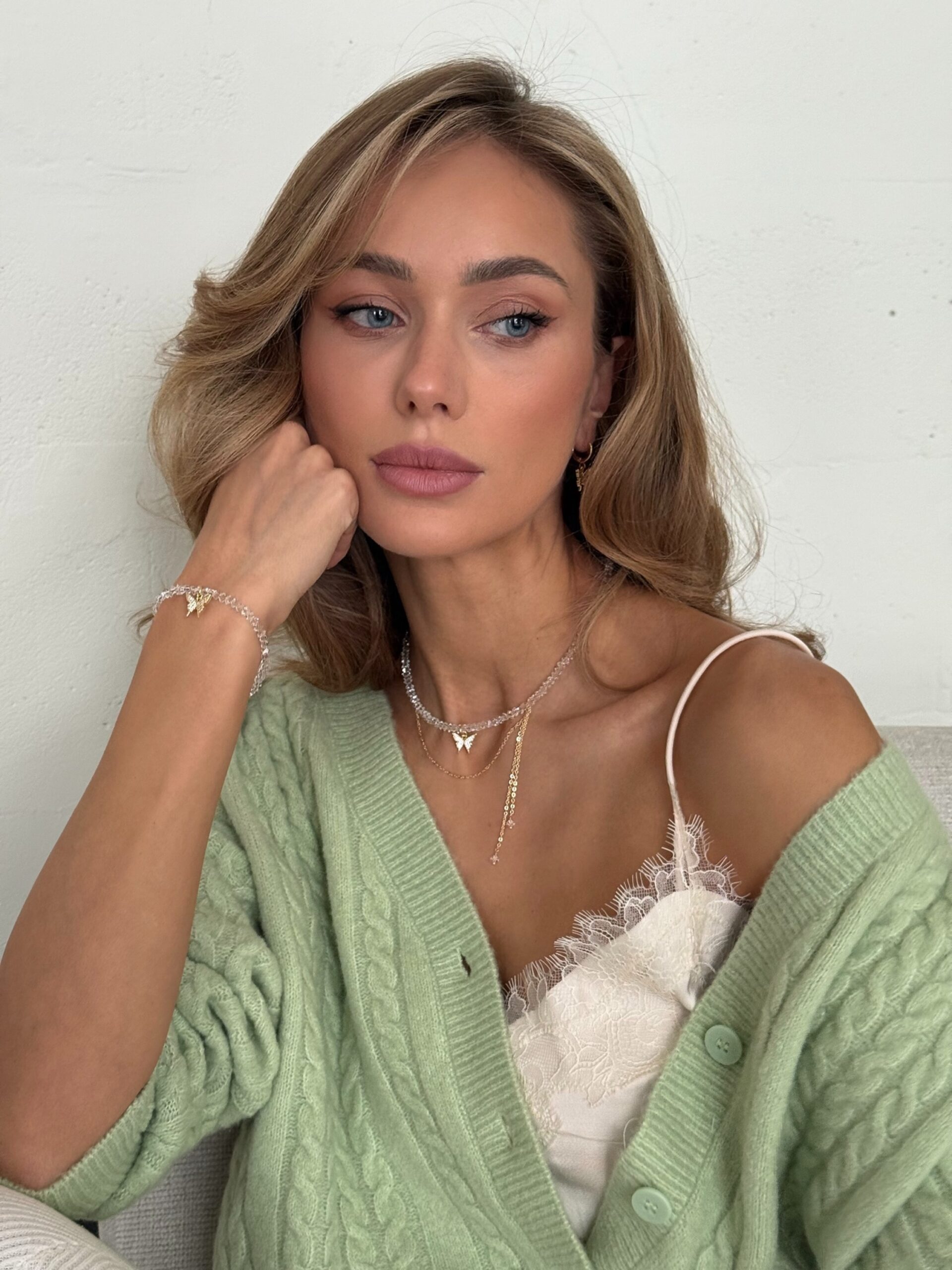 Витончений браслет із прозорого кришталю прикрашений мініатюрною підвіскою-метеликом. Легкий, повітряний та надзвичайно жіночний — ідеальний акцент для ніжних та романтичних образів.