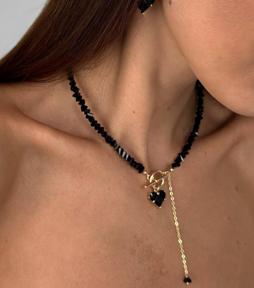 Браслет Linda з чорного кришталю (золотий колір)