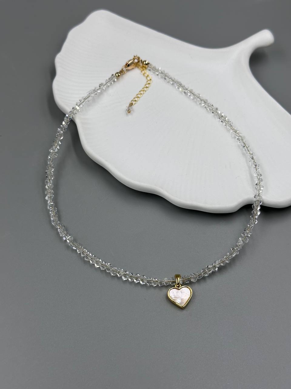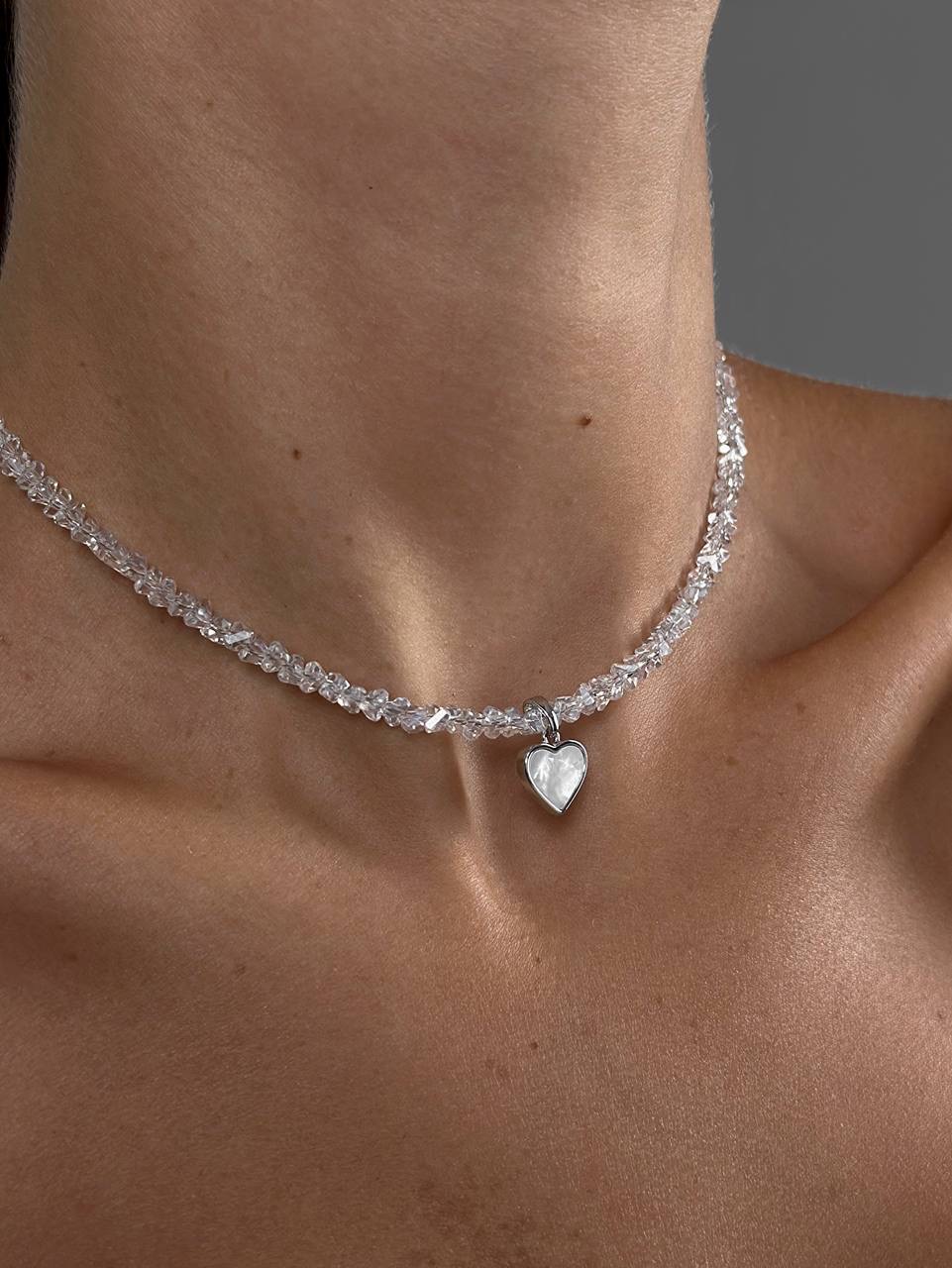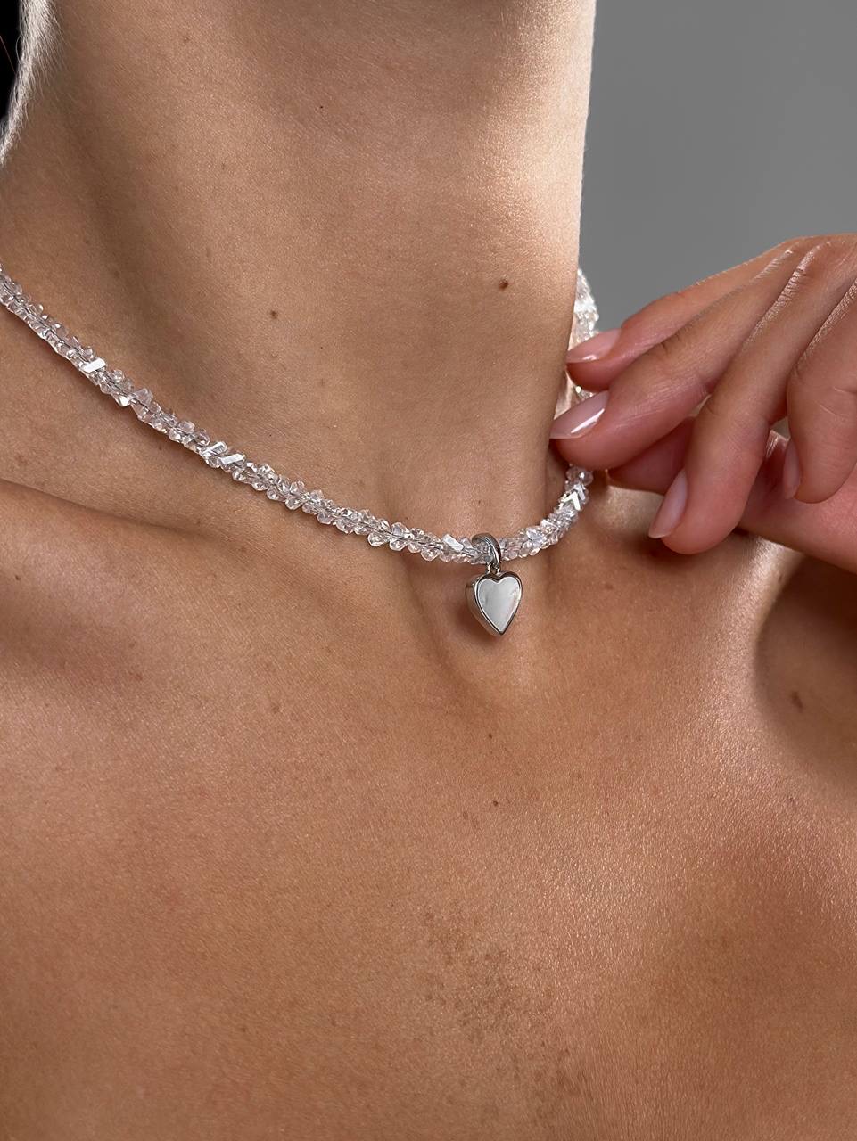 Ніжне кольє, прикрашене прозорим кришталем та підвіскою у формі серця. Символічне та романтичне, додає образу ніжності та елегантності!