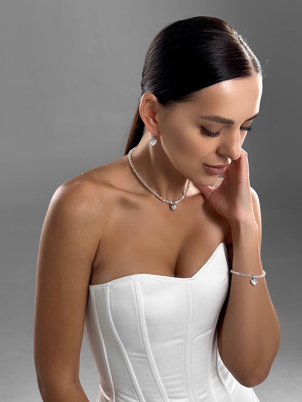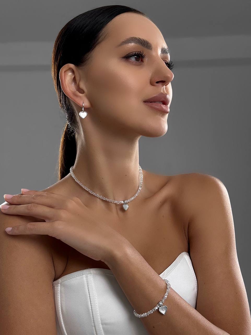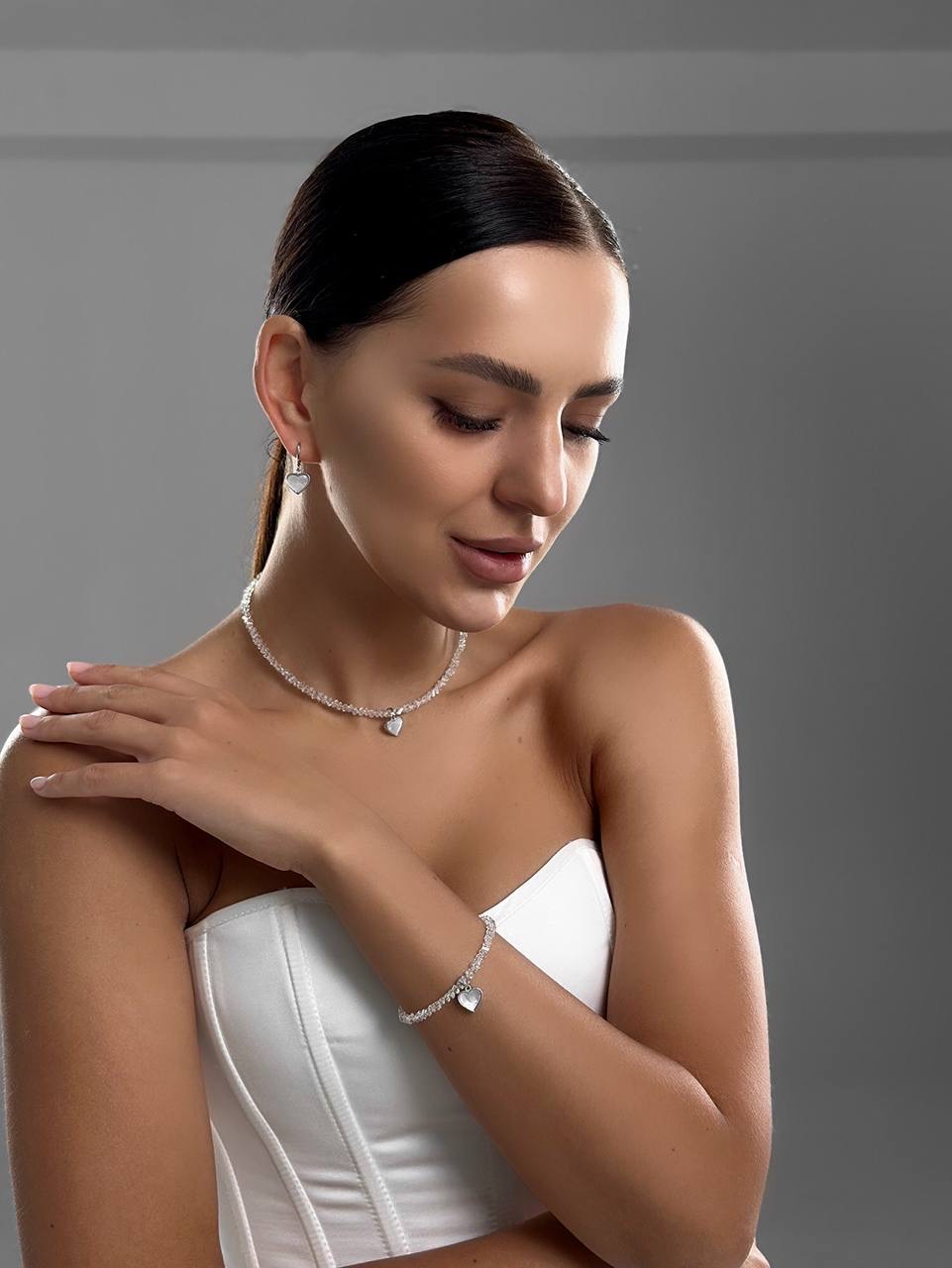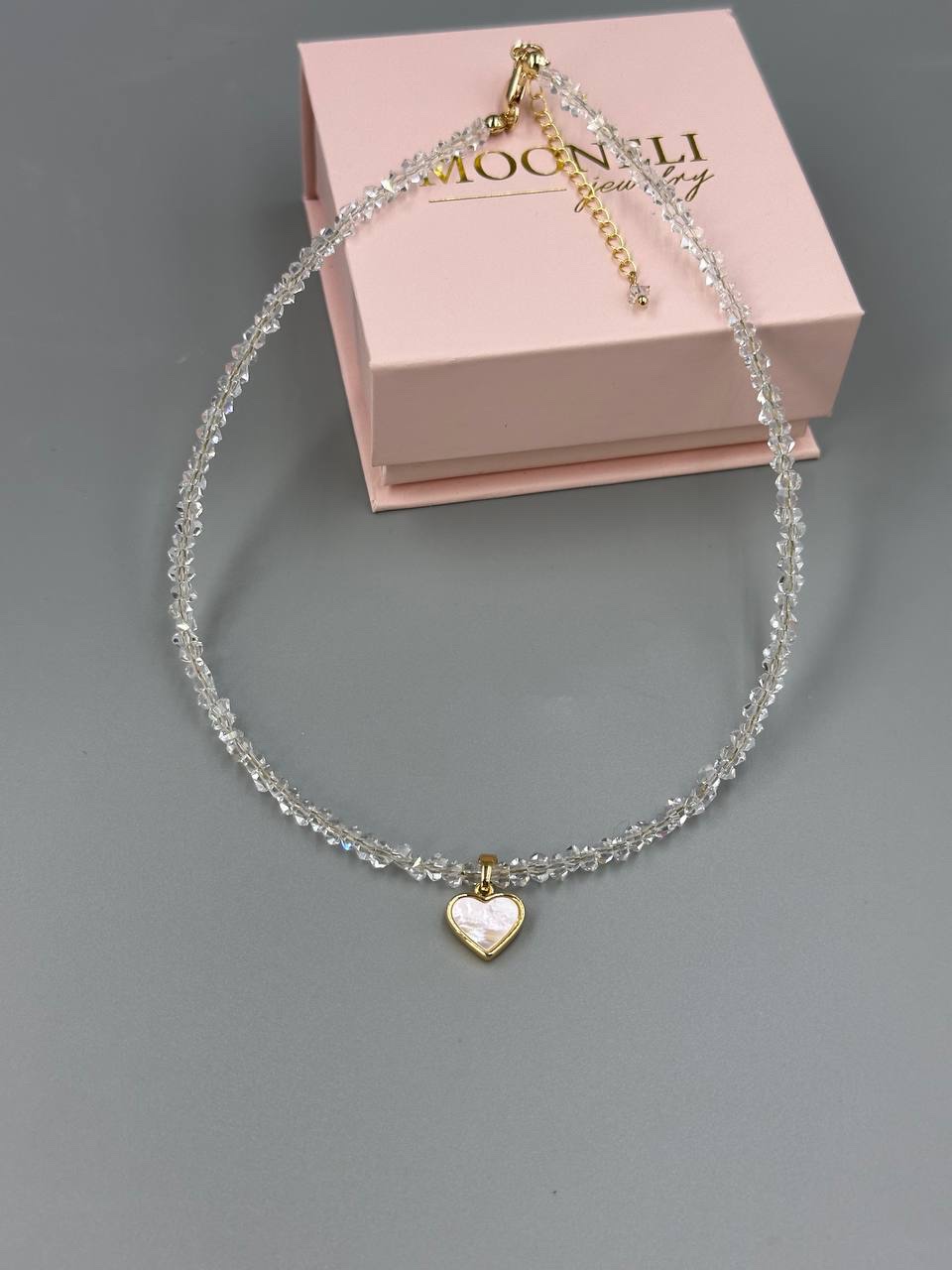 Ніжне кольє, прикрашене прозорим кришталем та підвіскою у формі серця. Символічне та романтичне, додає образу ніжності та елегантності!
