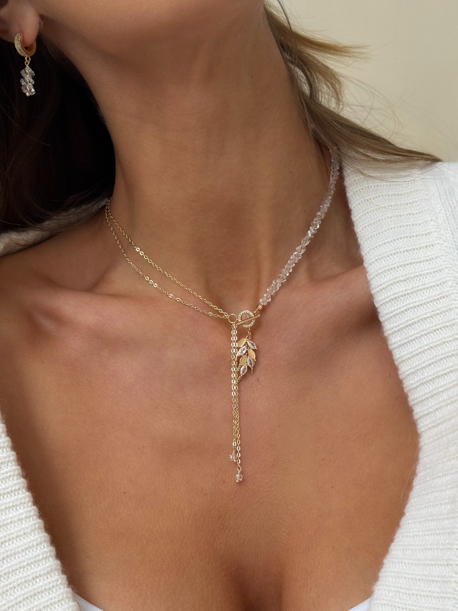 Витончене кольє з підвіскою у формі колоска — символ природної краси та гармонії. Тонкий ланцюжок із створює ефект багатошаровості, а підвіска ніжно підкреслює лінію декольте, додаючи образу тепла й вишуканості.