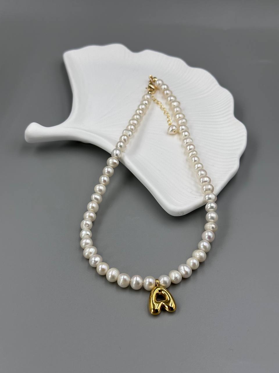 Вишукане перлове кольє, доповнене об’ємними золотими літерами, що створюють слово Amour — ніжне зізнання, яке завжди поруч. Кожна перлина має делікатний блиск, а масивні золотисті елементи додають прикрасі сучасного шарму та індивідуальності.