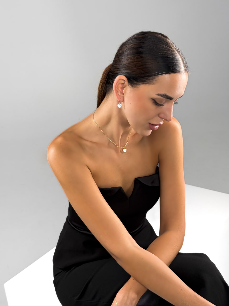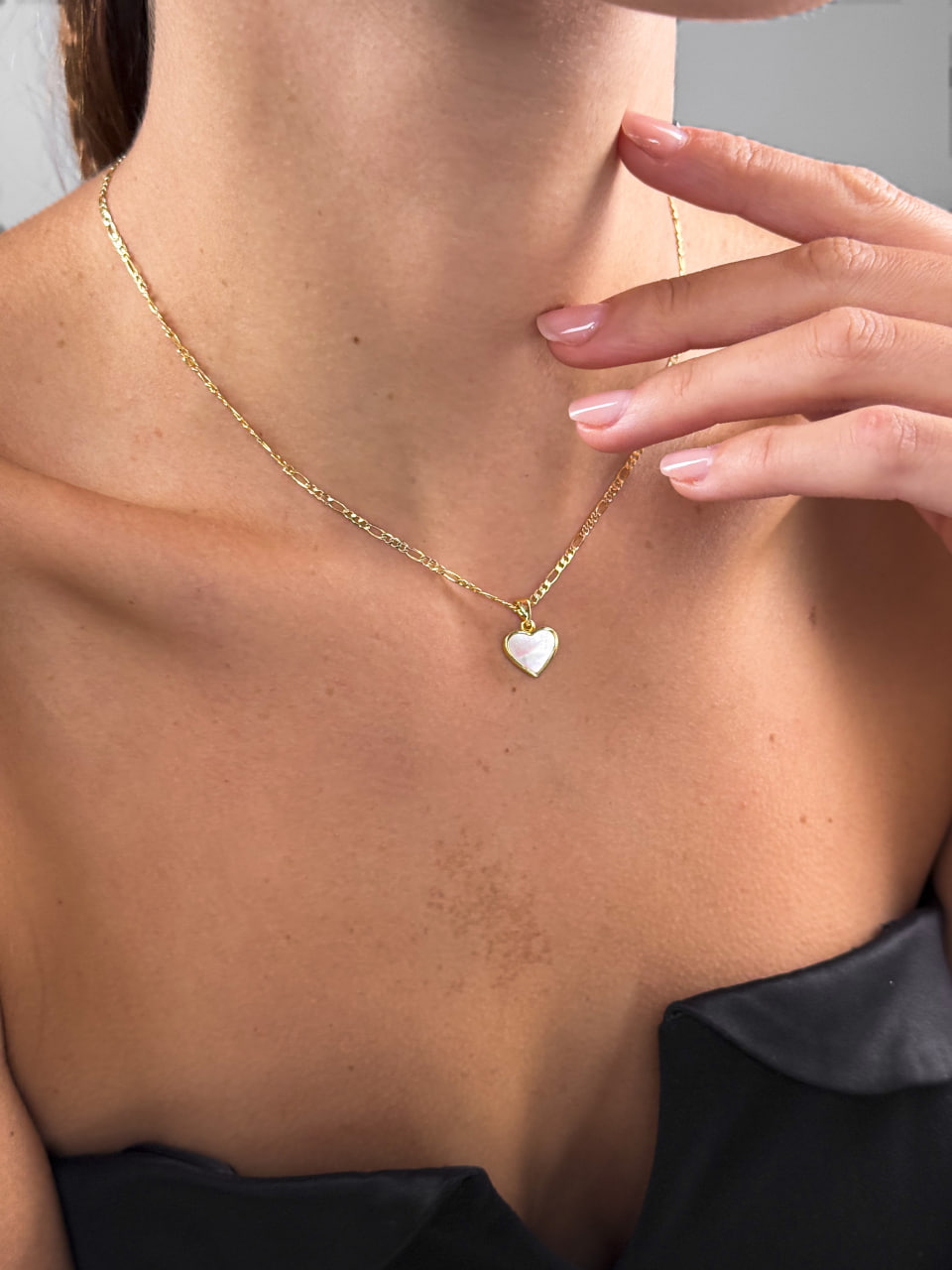 Делікатний ланцюжок із підвіскою у формі серця з перламутру — символ ніжності та природної краси. Перламутровий блиск додає легкості та романтичності будь-якому образу.