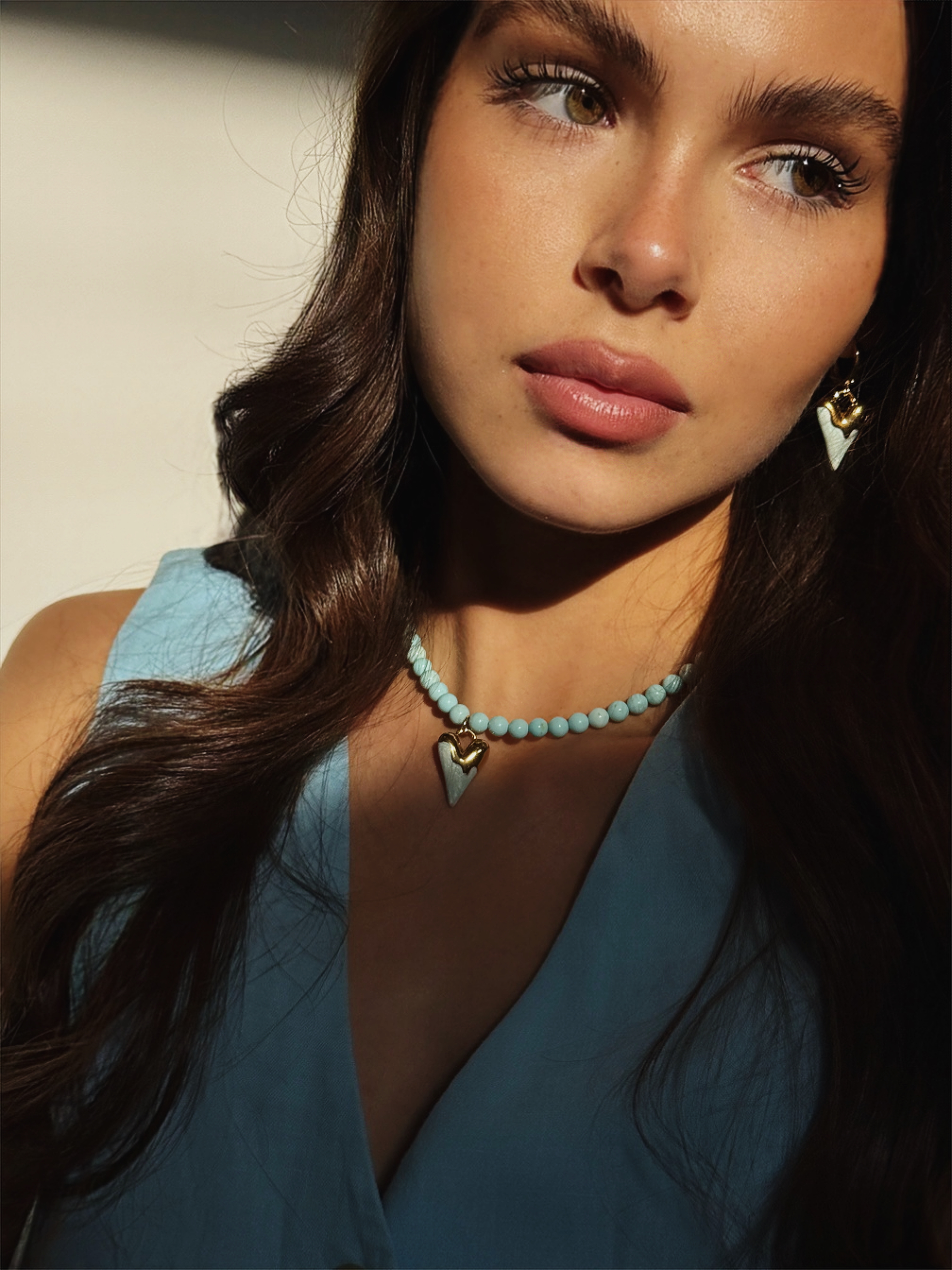 Сміливі, але вишукані сережки з масивним блакитним серцем в золотому обрамленні. Вони миттєво привертають увагу та додають образу виразності і витонченого характеру.