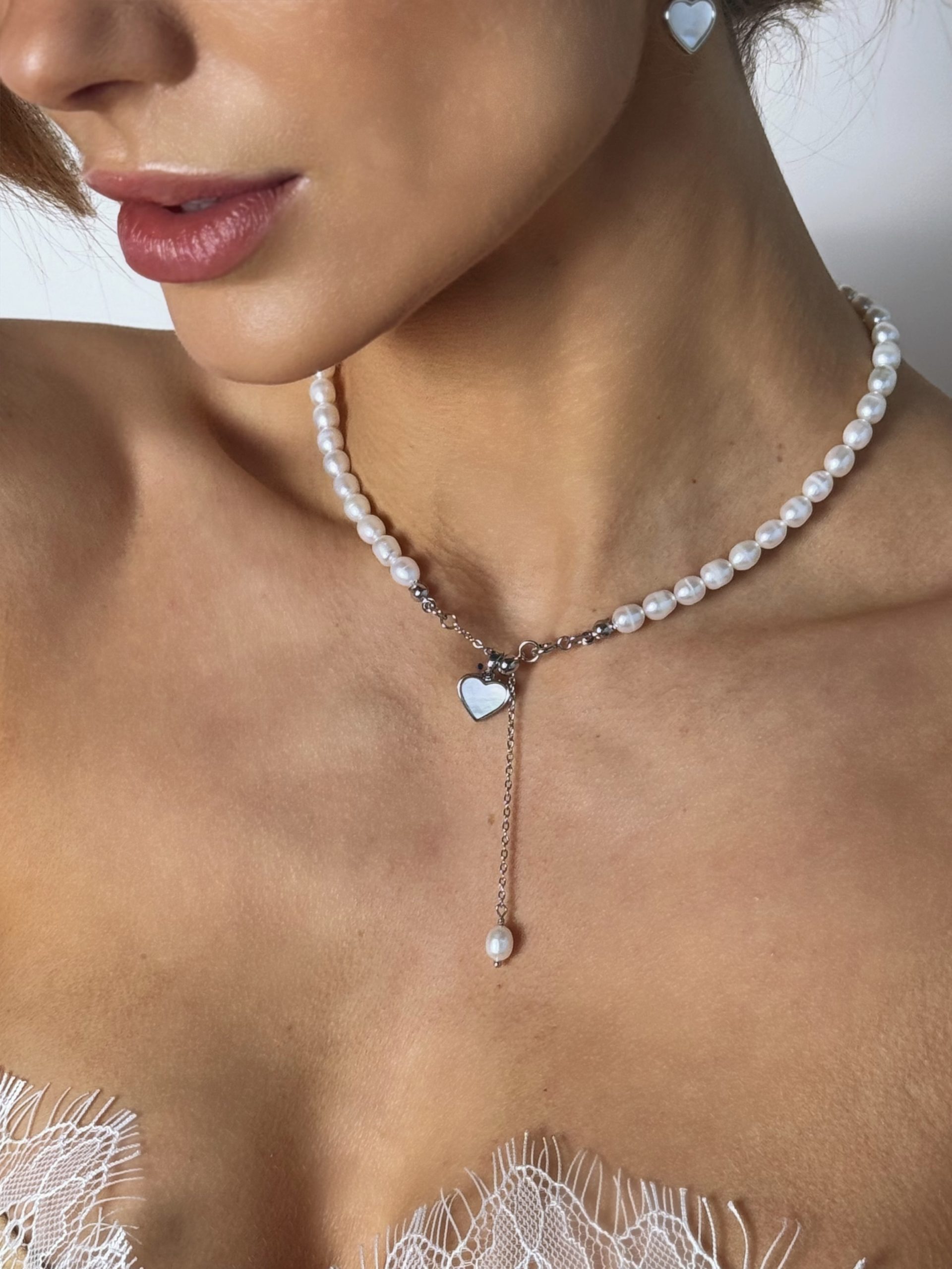 Цей вишуканий комплект прикрас — уособлення ніжності, елегантності та витонченого стилю. Поєднання класичних білих перлин із делікатними металевими акцентами створює ідеальний баланс між витонченістю та сучасністю.